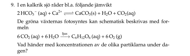 Hej! Som man ser på bilden finns 2 st reaktionsformler med en jämviktspil. Jag har svårt att tolka vad det är som händer i reaktionen samt vad som händer med koncentrationen. Hur kan man tänka/hur kan jag påbörja uträkningen?( vad är det man ska beräkna?)