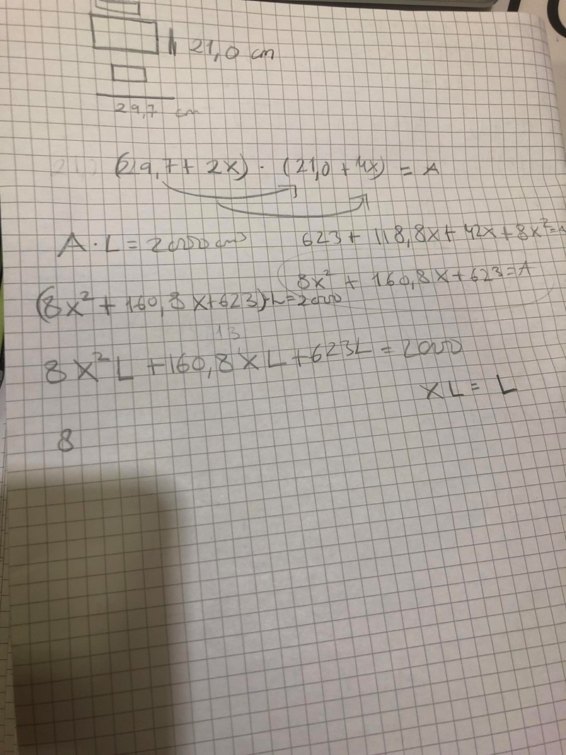 x(29,7-2x)*21= 2000 ? varför blir det fel när man skriver det som