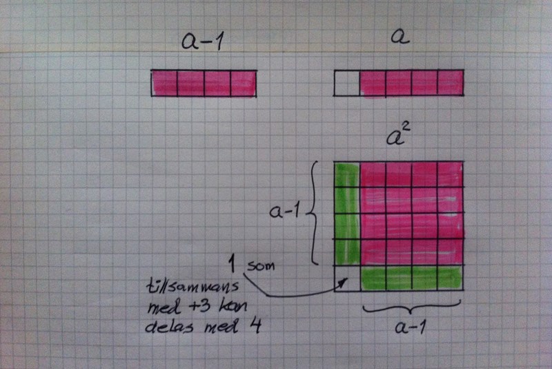 På sista radens vänsterled har du glömt en parentes (borde ha varit (a^2+3)/4) men den dyker upp efter likhetstecknet så det är en petitess skulle jag säga.