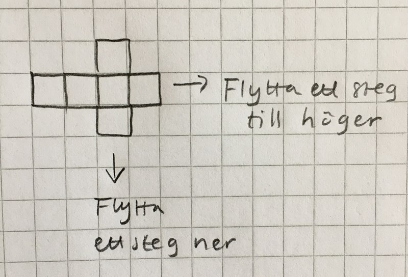 De 2 kvadraterna kan man flytta, ena åt vänster och andra åt höger. Så det är bara de ”kvadraterna” som sitter längst ut som man kan flytta runt, en regel är ju att det måste finnas lika många kvadrater åt båda hållen