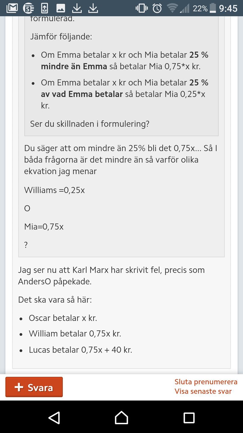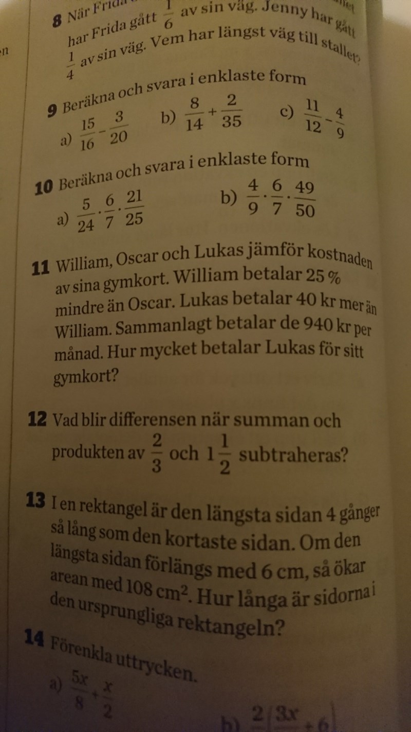 Smaragdalena skrev :Kalla kostnaden för Oscars kort för x. Hur mycket betalar William för sitt kort? Hur mycket kostade Lukas kort?