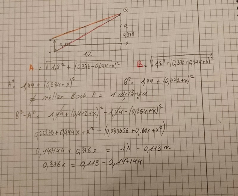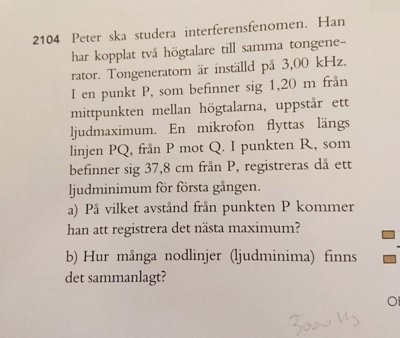 Egentligen är avstånden mellan högtalarna något mindre än 0.188m, du använde gitterapproximation även där. Du borde alltså egentligen först ställa upp motsvarande ekvation för att hitta d. Men felet är så litet att jag tycker att du kan få komma undan med det :)