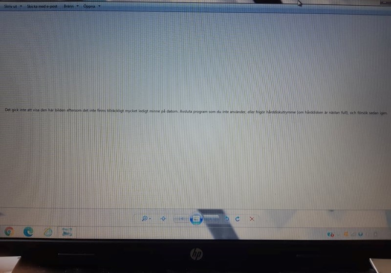 En bild på min pappas laptop går inte att öppna fast det gick igår. Det går dock att öppna alla andra bilder som finns på datorn... I bildens ställe står det att det beror på att datorns minne kan vara fullt. Det är det absolut inte, långt ifrån.