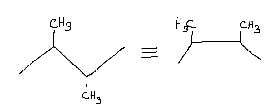 Hej, när jag ska rita 2,3-dimetylbutan kan jag då sätta båda metylgrupperna på samma sida av kolkedjan? T.ex. att jag ritar dem båda över istället för en under och en över som boken har gjort på bilden.