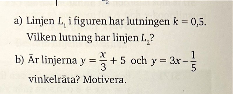 Produkten måste bli -1 för vinkelräta eller hur? Ja k-värdet är 3. Så då är 1/3*3=3/3=1. Svar nej de är inte vinkelräta :)