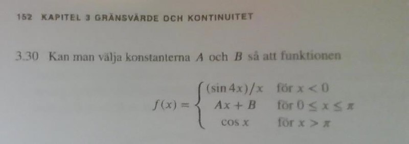 Kan man bestämma A och B så att funktionen f(x) blir kontinuerlig?
