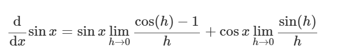 Och detta är det jag använder som derivatan till sinus. På så sätt använder jag bara att gränsvärdena existerar, inte deras värden.