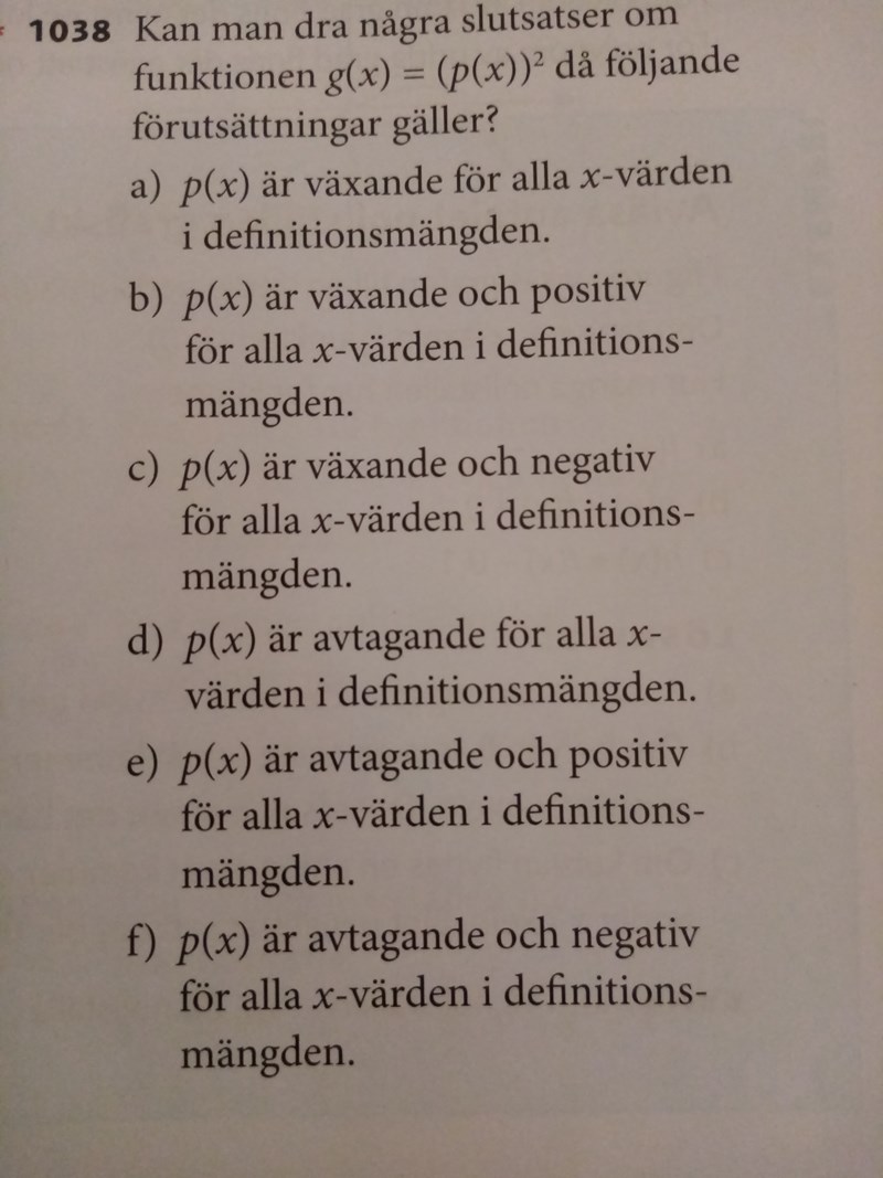 a) om t.ex p(x) är 2x+1 dvs växande för alla x-värden i definitionsmängden då är väl g också växande?
