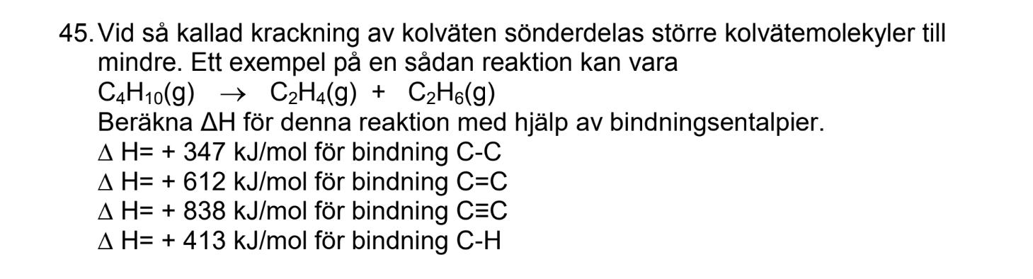 Jag fick att bindingsentalpi av butan är 5171 fast jag är osäker på rästen.