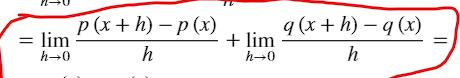 Du menar att f(x) = p(x) + q(x) och så ska man visa att f’(x) = p’(x) + q’(x) ?