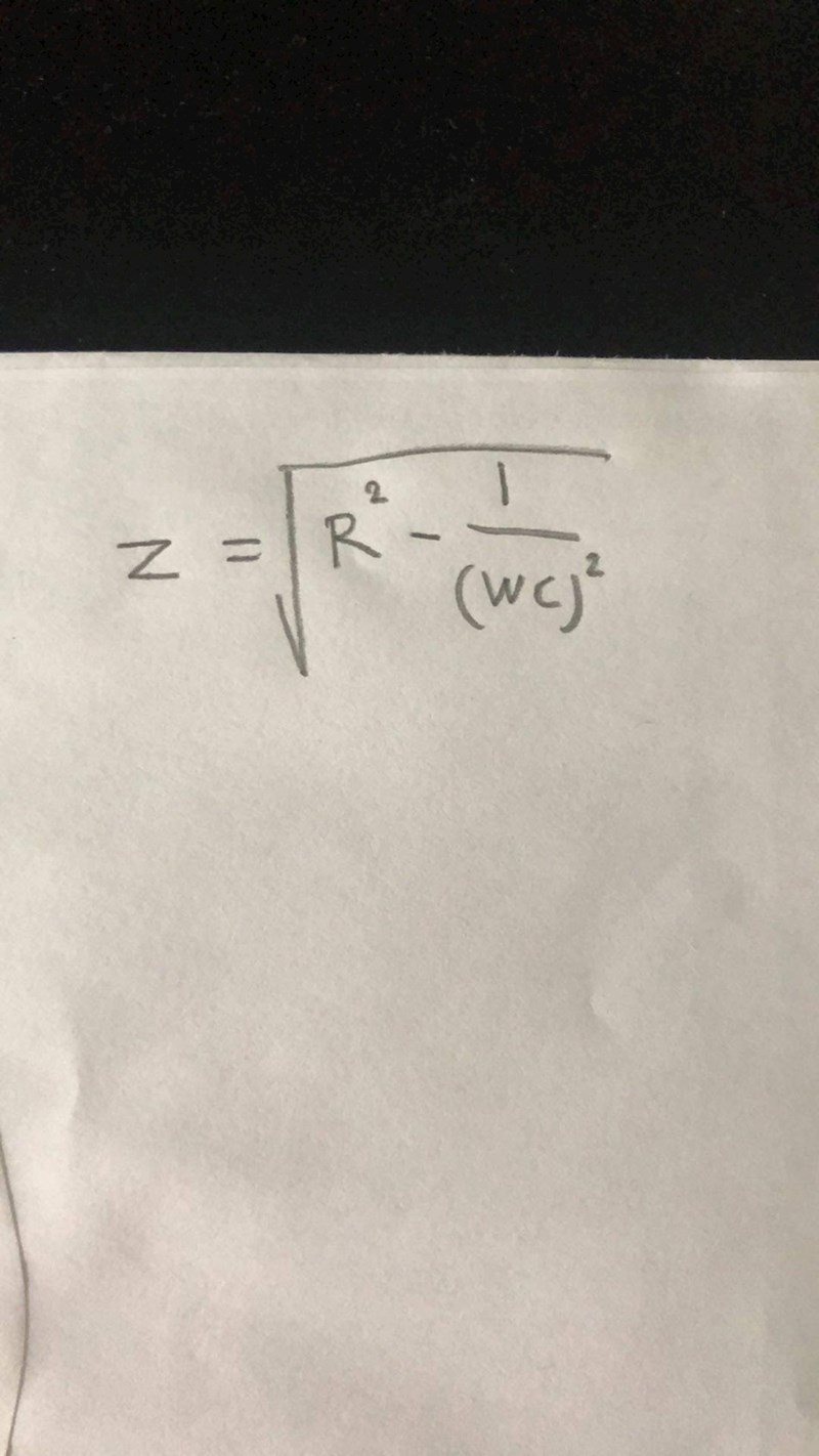 Jag ska skriva ut en formel för C. Jag tänkte först göra 1/(wc)^2 till (wc)^-2 och sedan istället för rot tecknet så lägger jag in hela som 1/2