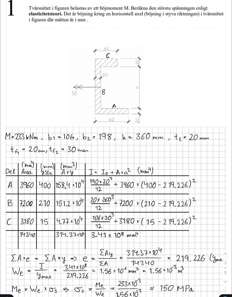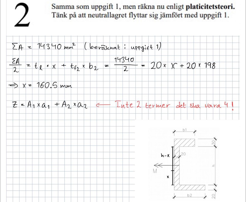Hej, jag skulle räkna denna uppgiften (2) som är uppföljning av första men då ska man tänka plasticitetsteori, jag kan vara ärlig å säga att jag kan inte mycket inom det bara det grundläggande men här har jag fått att det ska vara 4 termer när man räknar Z å inte två som jag skrivit.