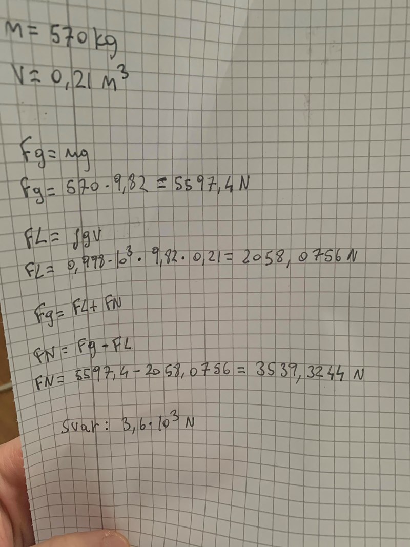 Jag tycker det är rätt, men vad betyder din beteckning FN? Det är lika stor kraft som normalkraften i din förra fråga, men det är inte en normalkraft här, så N:et är vilseledande.