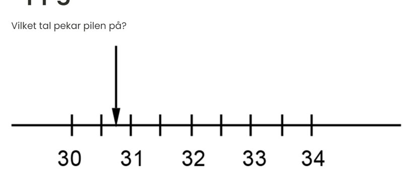 Jag hade kollat på tallinjen. Där ser vi 30 och 30,5 och 31. Talet verkar ligga mellan 30,5 och 31