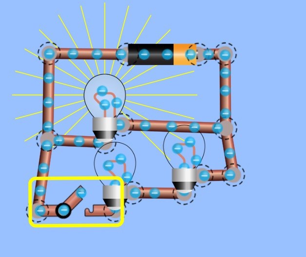 Det går ju att få strömmen att "gena" förbi lampor med hjälp av att placera strömbrytare så att när man trycker ner strömbrytaren så lyser bara en av lamporna och lyser starkare. Men när man inte trycker ner strömbrytaren så kommer då alla lysa.