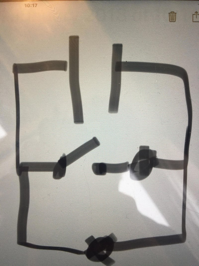 ett batteri, två lampor och en strömbrytare. En lampa ska alltid lysa och den andra ska lysa när strömbrytaren är frånslagen och den ska sluta lysa när strömbrytaren är nedslagen.