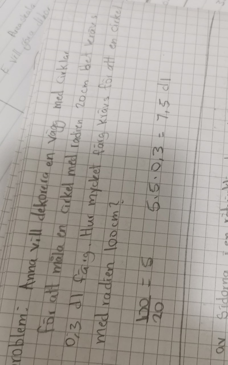 Räkna ut arean på en cirkel med radien 20 cm och räkna