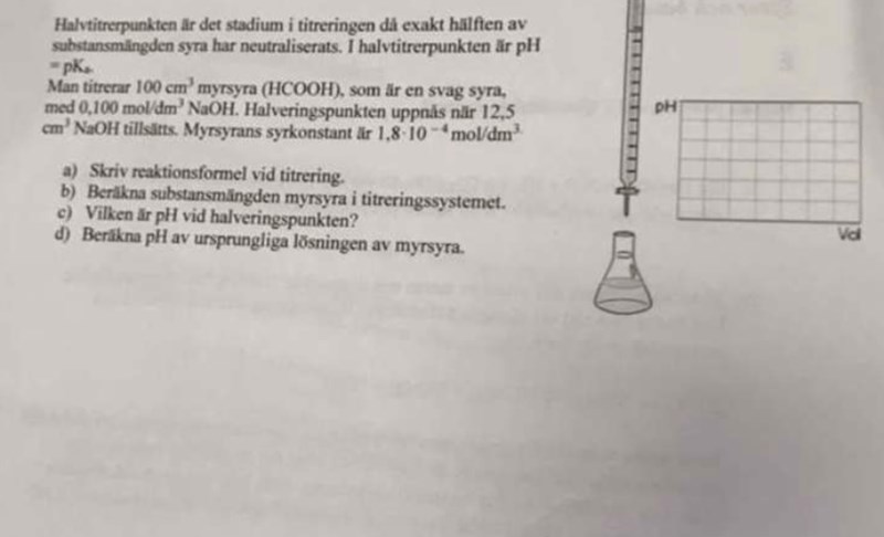 a) HCOOH + NaOH blir H2O + NaCOOH
