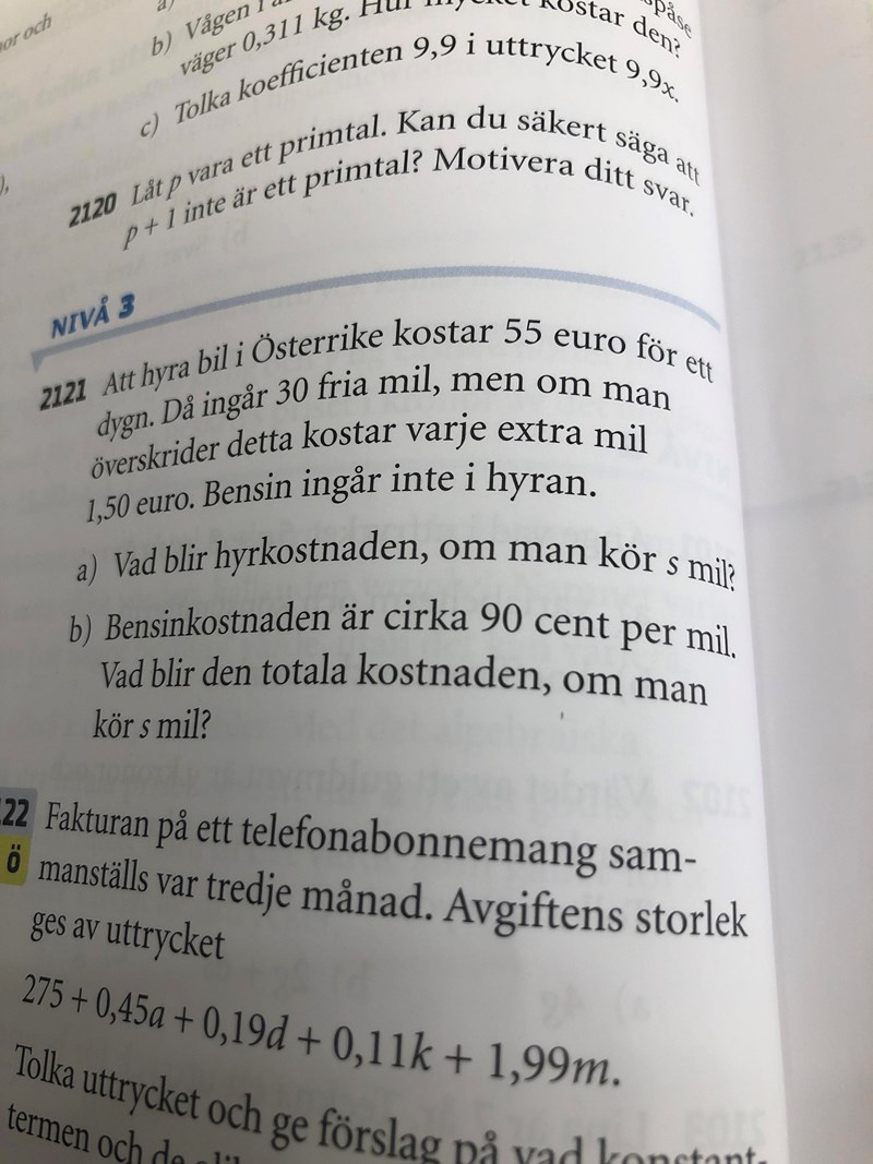 Jag skrev något helt annat än facit.. Jag skrev (vi kallar d för antalet dygn) då blir a) 55d+1,5s -( 30*1,5)