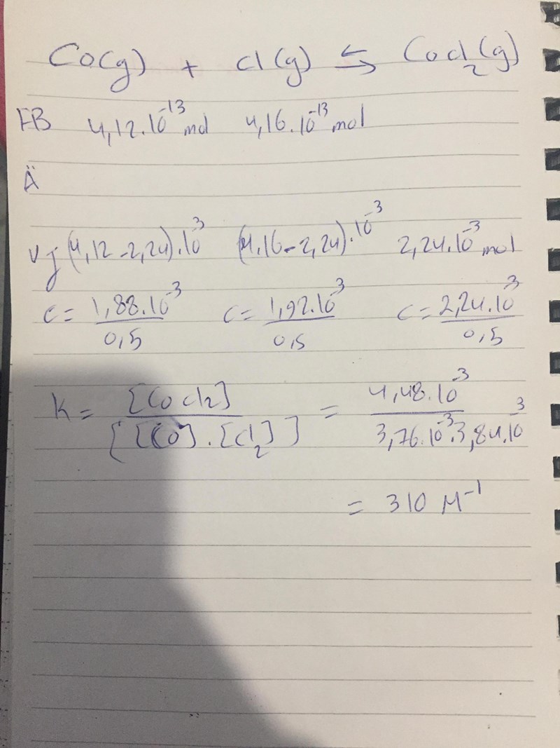 a. Co(g) + Cl2(g) ⇄ COCl2(g)