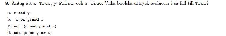 Men vet inte hur jag ska tänka på frågan (rätt svar är b och c)Använd följande (T = True, F = False):