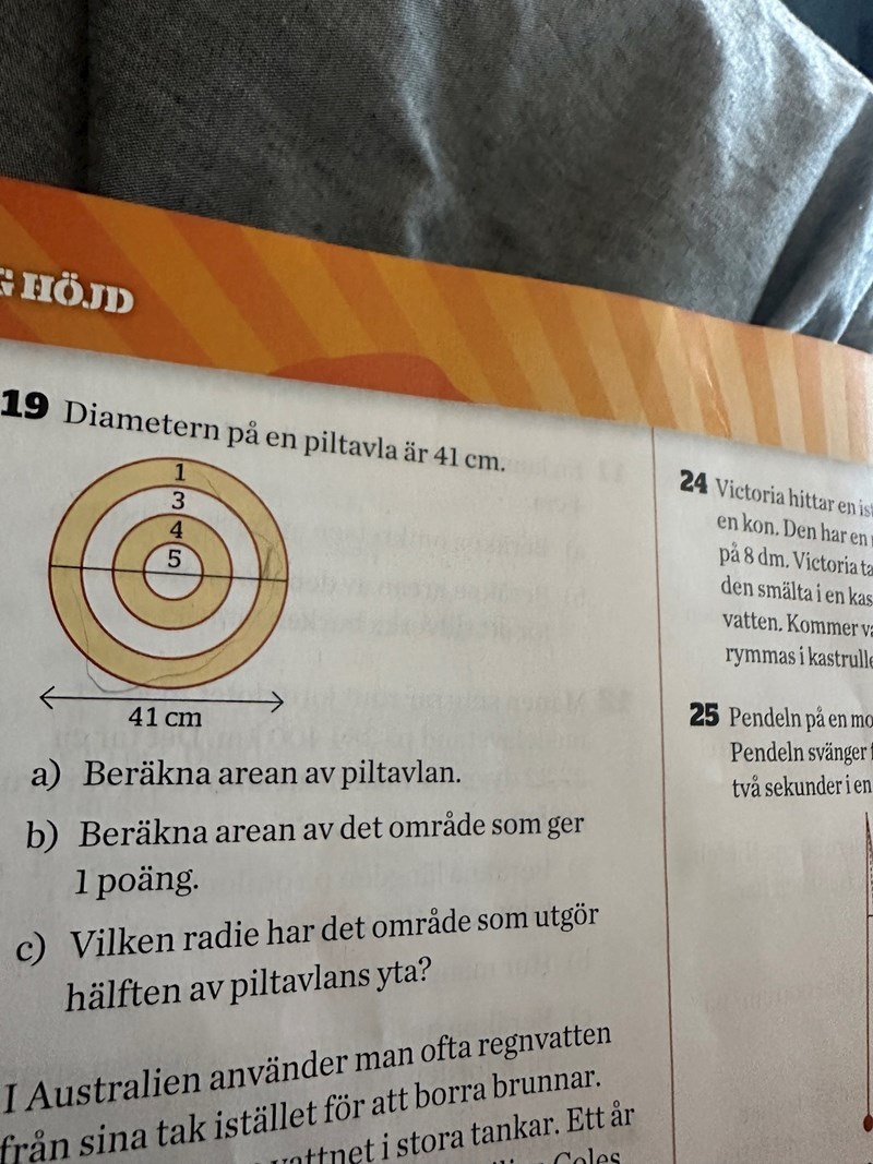 Hur stor är hela piltavlan? Hur stor är cirkeln innanför området med 1 poäng?