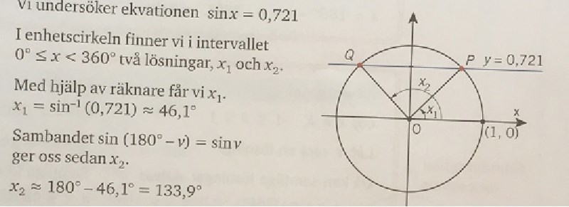 Du vet att för att få den alternativa vinkeln vid användande av sinus så tar du