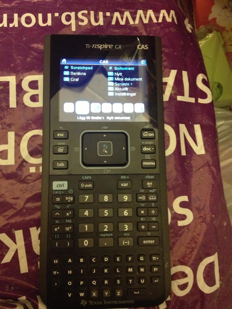 Jag har tittat lite på det, men har inte kommit långt med detta. Miniräknaren är helt ny. Den tar jag inte med till provet. Jag tar de som jag kan någorlunda hantera.