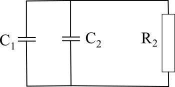 Här är din krets när Q har fördelats till den "nya" kondensatorn: