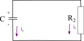 Slutligen ska den nya kondensatorn laddas ur över , då ser ju kretsen ut såhär: