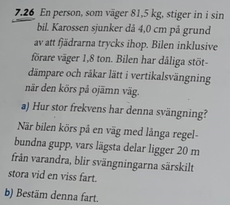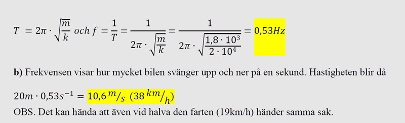 Periodtiden T är hur lång tid det tar för bilen att köra från ett gupp till nästa dvs s=v*T. f=1/T=v/s, dvs frekvensen är hur många gupp som bilen passerar per sekund.