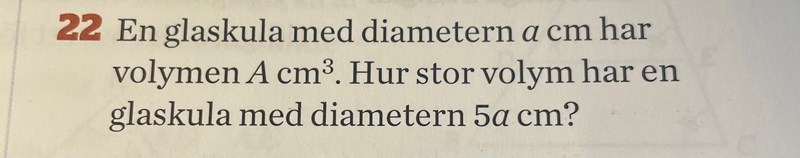 Så i ditt fall ökade diametern från a till 5a, då ökade volymen till (5a)3