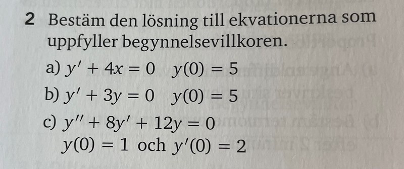 Jag har löst uppgift 2 c) och nästan får rätt. I facit är svaret y=2e^-2x -e^-6x. Det ända jag inte förstår är hur man ska veta vilken som är r1 och vilken som är r2 när man har löst ut r från den karaktäristiska ekvationen. Alltså är r1 C eller D?