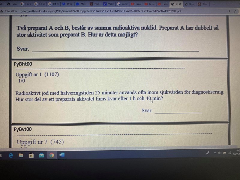 Hej jag har fastnat på följande fråga, får fel svar och förstår inte varför: ( fråga nr 1 om jod)