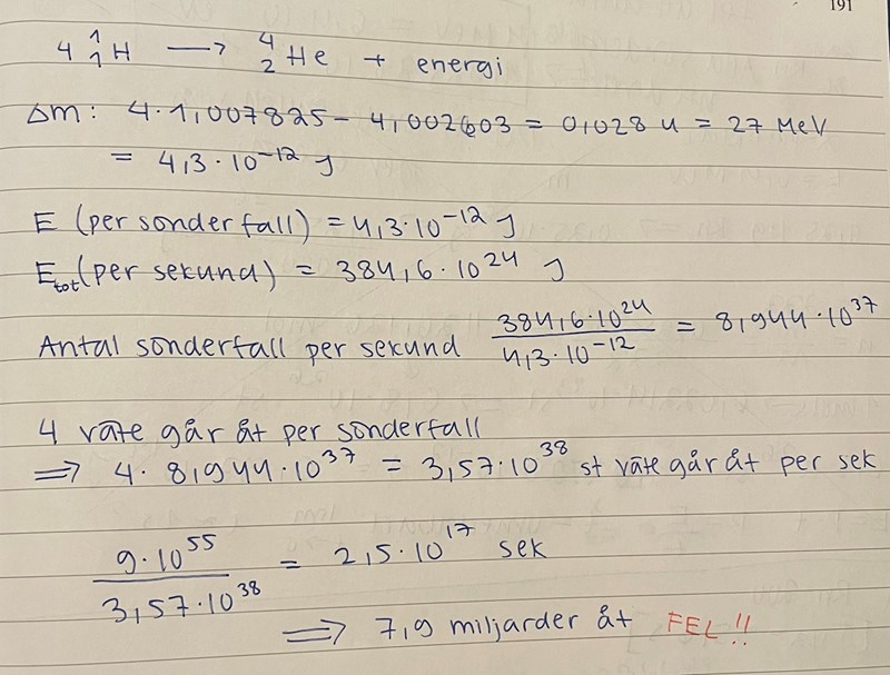 Hej! Jag har prov imorgon och försöker lösa sista uppgiften på övningsprovet. Jag får 7,9 miljarder år och svaret ska vara 17 miljarder år.