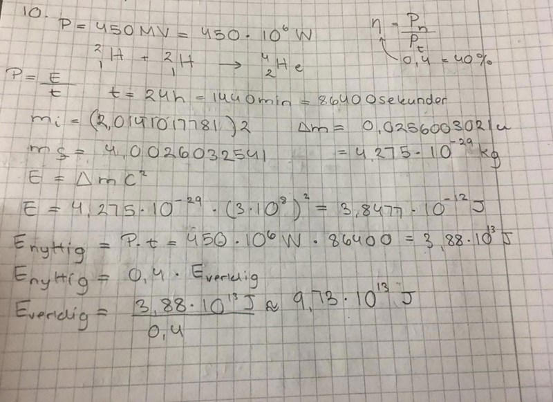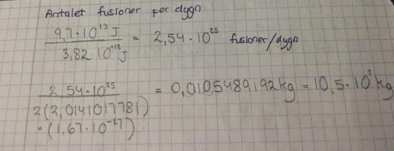 Frigjord energi i fusionen är men när du räknar ut fusioner/dygn använder du .