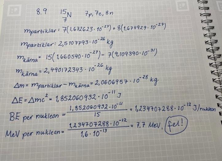 Du har försökt räkna ut bindningsenergi per nukleon.