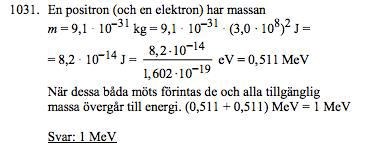 Kärnfysik // hur mycket energi frigörs om en elektron möter en positron?
