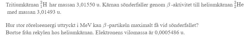 Såklart. Först måste man teckna reaktionen för beta-sönderfallet som uppgiften beskriver, dvs du måste veta vad ett beta-sönderfall och emittering av beta-partikel innebär.
