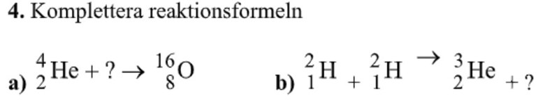 Partikeln eller partiklarna på högersidan skall ha samma masstal totalt som partiklarna på vänstersidan, och samma antal protoner totalt på högersidan pch vänstersidan. Använd periodiska systemet för att ta reda på vilken partikel det är. Om du behöver mer hjälp - visa hur långt du har kommit och fråga igen.