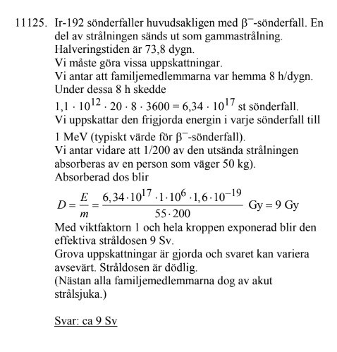Hej! Jag förstår inte riktigt varför man antar att just 1/200 av den utsända strålningen absorberas. Vad byggs det antagandet på? Resten av uppgiften gick bra och löstes korrekt, men jag undrar mest hur jag skall tänka på liknande uppgifter.