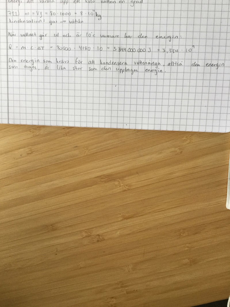 Jag tror att du tänkt: Hur många kilo vattenånga avger den mängden energi som 80 kubikmeter vatten tagit upp när temperaturen stigit 10 grader.