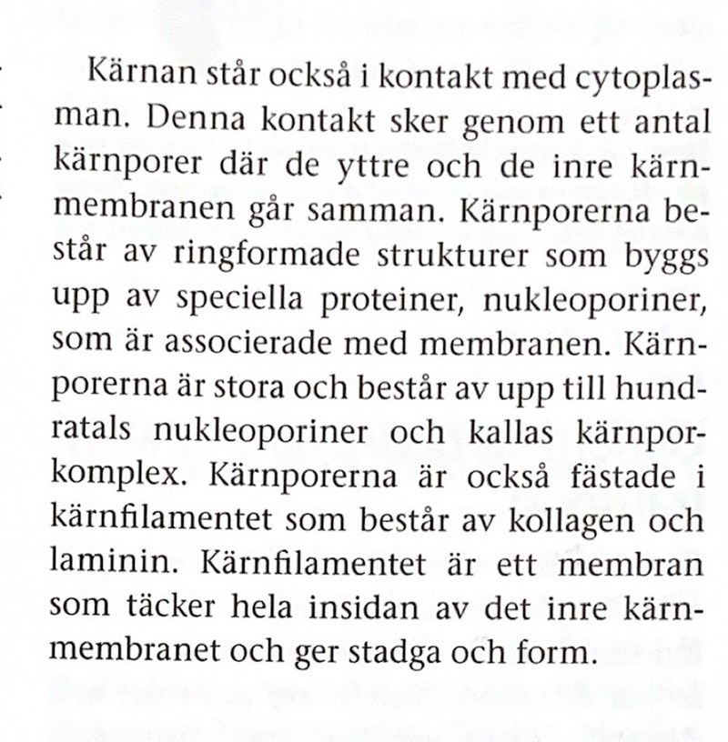 Fråga: Vad exakt räknas in när man säger ”kärnporkomplexet” räknar man i kärnfilamenten(lamin & kollagen) + kärnporerna ( bersående av nukleoporiner) eller är det enbart ett samlingsnamn för ALLA porer tillsammans?