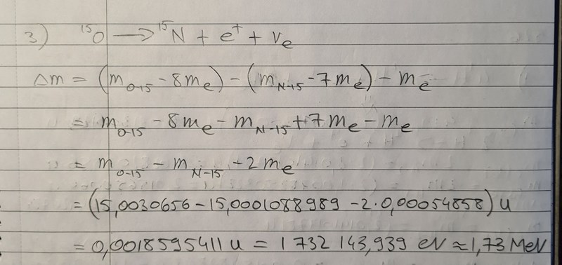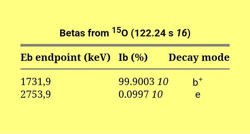 Beta-plus sönderfall av 15O har ett Q-värde av 2,75 MeV enligt