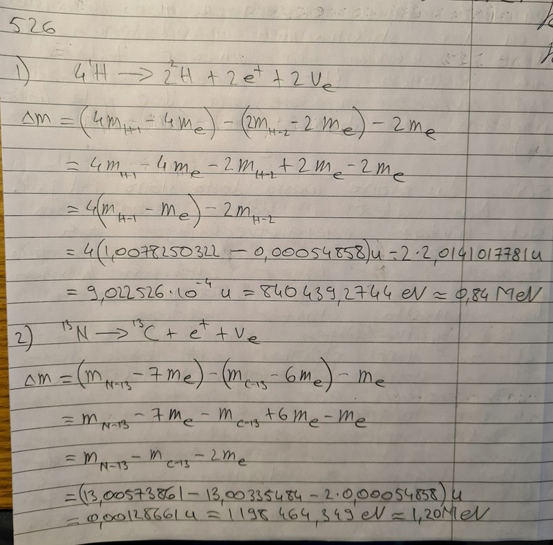 Detta är kärnreaktioner och man tar endast med massan av kärnor eller nuklider. Man utesluter massan av elektroner?