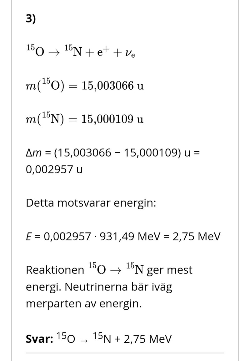 Men om man nu är elev och får sådana frågor, då ska man svara med en del text. Ibland är det kanske tydligt vad frågan avser, till exempel om de frågar efter positronens högsta energi. Om de bara frågar efter hur mycket energi reaktionen ger är det nog säkrast att ge båda svar.