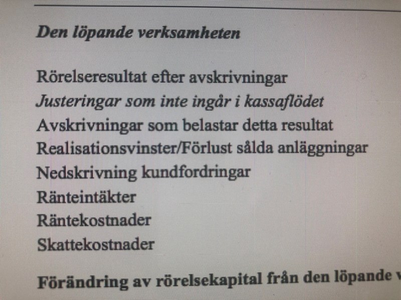 Bör nedskrivning av kundfordringar vara med i kassaflödet?