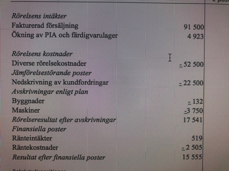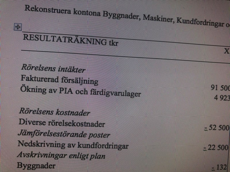När man skall få fram ”avskrivningar som belastar detta resultat” vilka är det man skall räkna ihop, jag tänkte på maskiner och byggnader (132 + 3750) borde något mer vara med?"