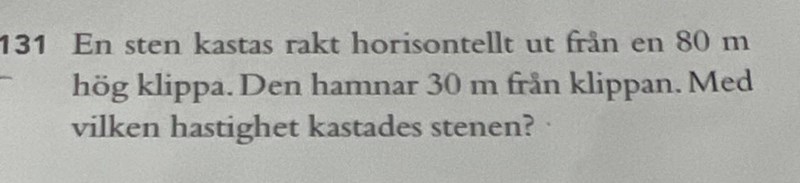 Men det står att stenen kastas, betyder det inte att den kastas med en utgångshastighet?