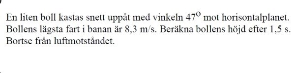 Ture skrev:på högsta höjden där farten är 8,3 m/s sker rörelsen enbart i x-led.